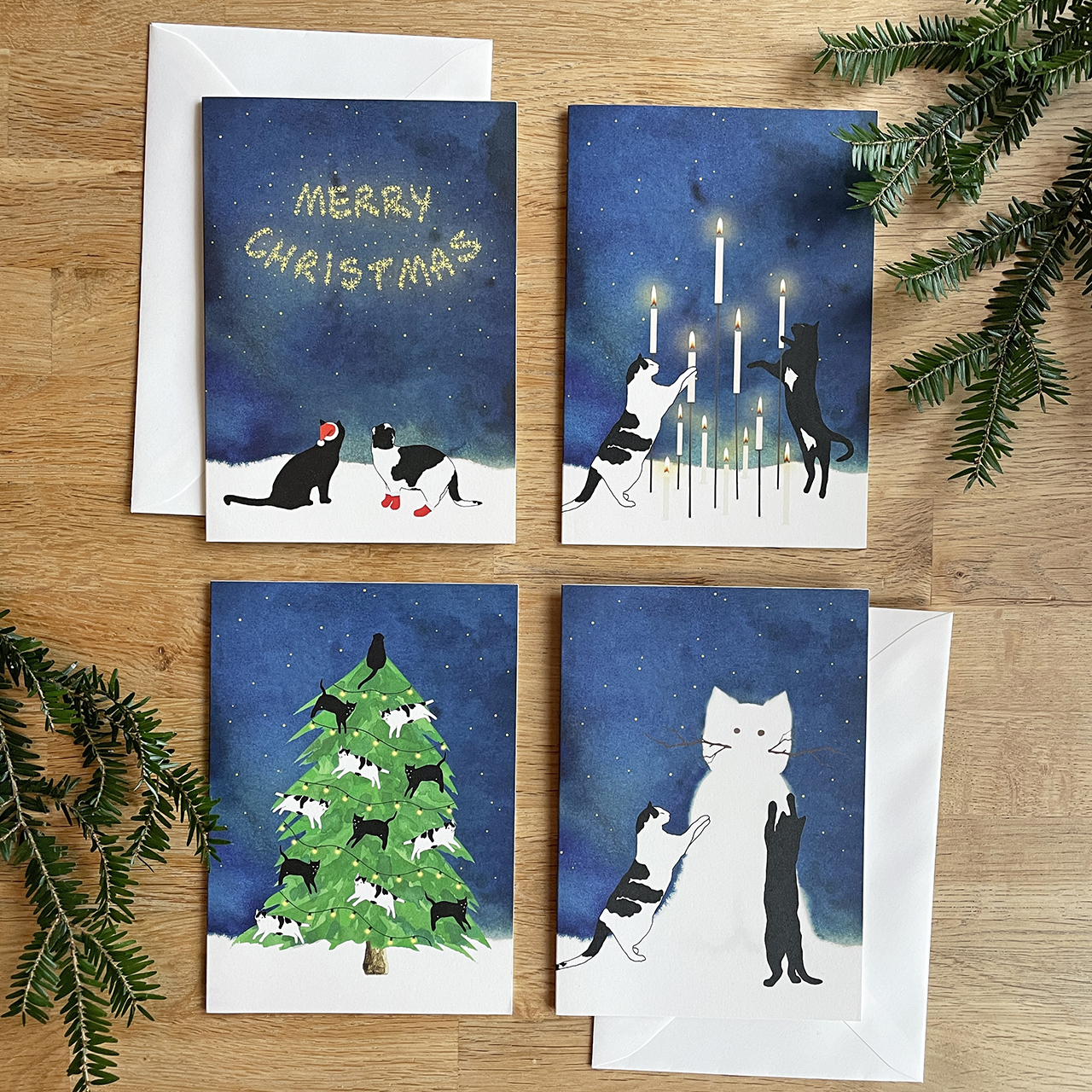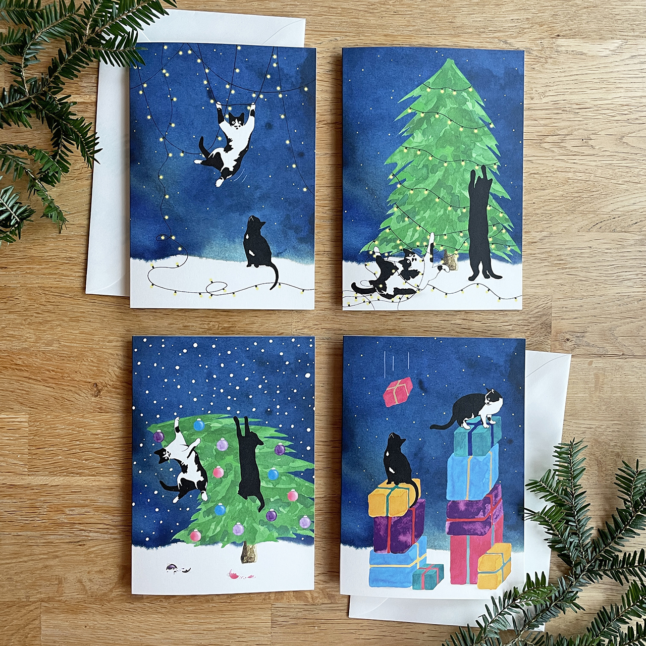 A couple of years ago I started making Cat Christmas Cards with our own cats on them. The first sets of cards featured Sjekkie and Roe, but since Sjekkie has passed our new catbaby Tippie is on the Christmas Cards.